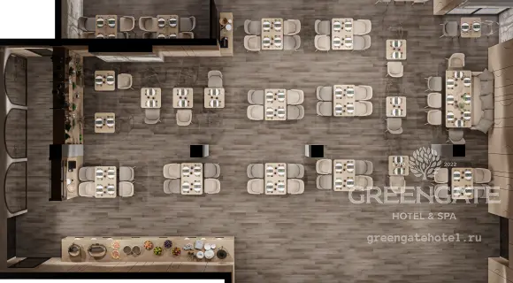 GREENGATE HOTEL&SPA has MICE services which comprise business centre services, a meeting room and a conference hall designed for various business events, corporate holidays and conferences, training sessions, and other business events. The hall size is 200 m2 and it is facilitated with sound equipment, a screen, a multimedia projector, and a magnetic marker flipchart. It is suitable for events that consist of 40 to 80 persons with various seating patterns and up to 150 persons with a buffet table.