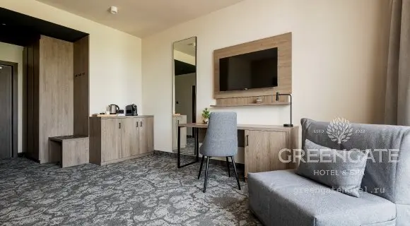 GREENGATE HOTEL&SPA предлагает 96 номеров, оформленных в лаконичном эко-дизайне с использованием натуральных материалов. Нейтральная палитра в оттенках бежевого, серого и белого придаёт комнатам лёгкость и уют, создавая атмосферу расслабления и комфорта для каждого гостя.